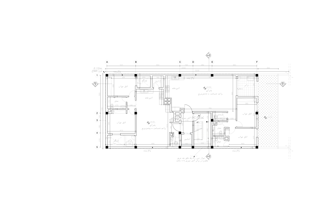 The project is located in Mellat area in Ahvaz city. The infrastructure of the project is 1200 square meters, including one floor (ground floor) in theform of parking and lobby and 5 floors designed and implemented as two units.