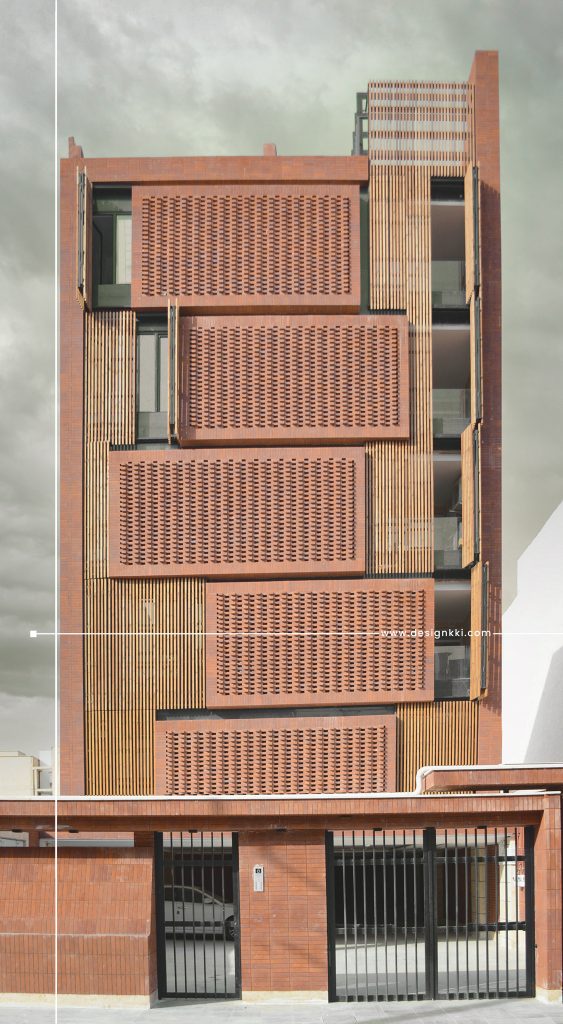 In the used parts of the termowood, using the Create of empty space during the installation of the termowoods, it causes the same function as the brick surfaces. The thermos mostly cover terraces and part of the bedrooms. These spaces allow residents to use different floors through railing oneach floor. In the terraces on each floor, in addition to covering the visual pollution including Barbie Qs and coolers, it creates confidentiality in theuse of terraces and better interaction with the hall.