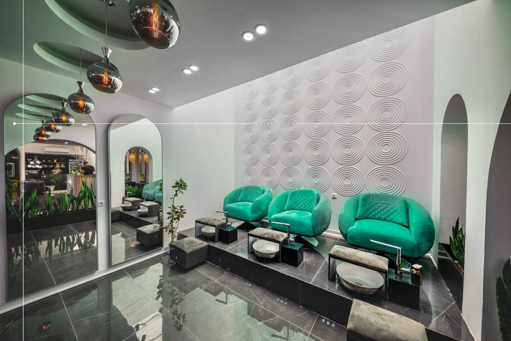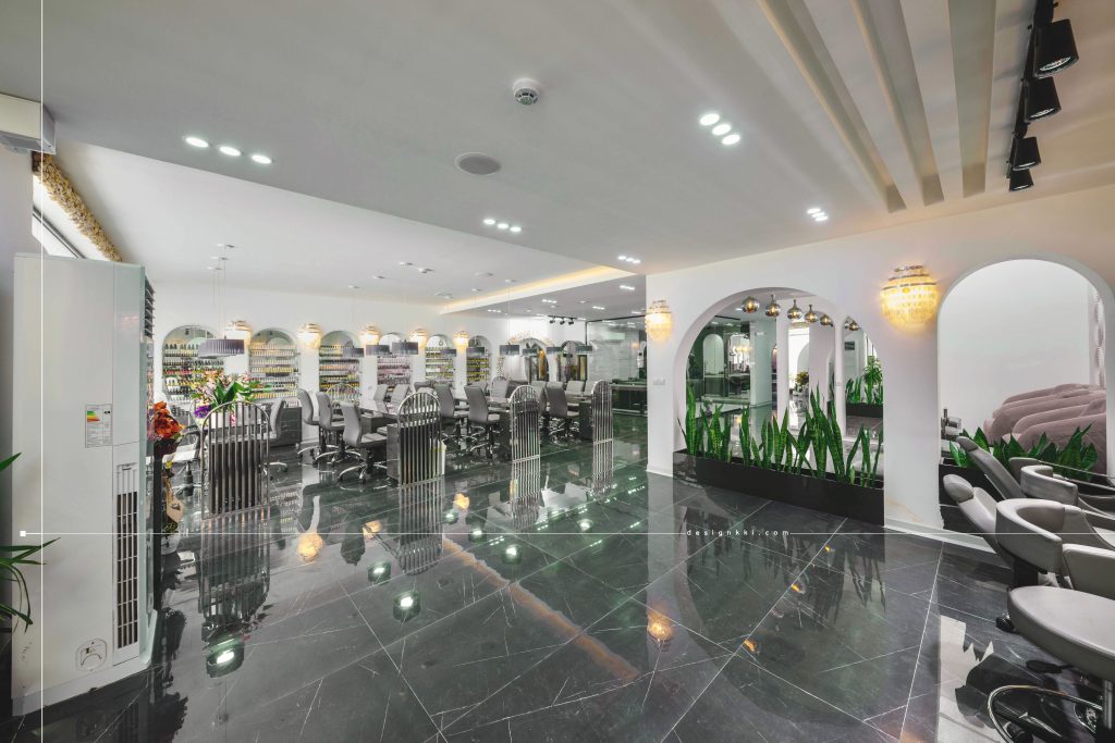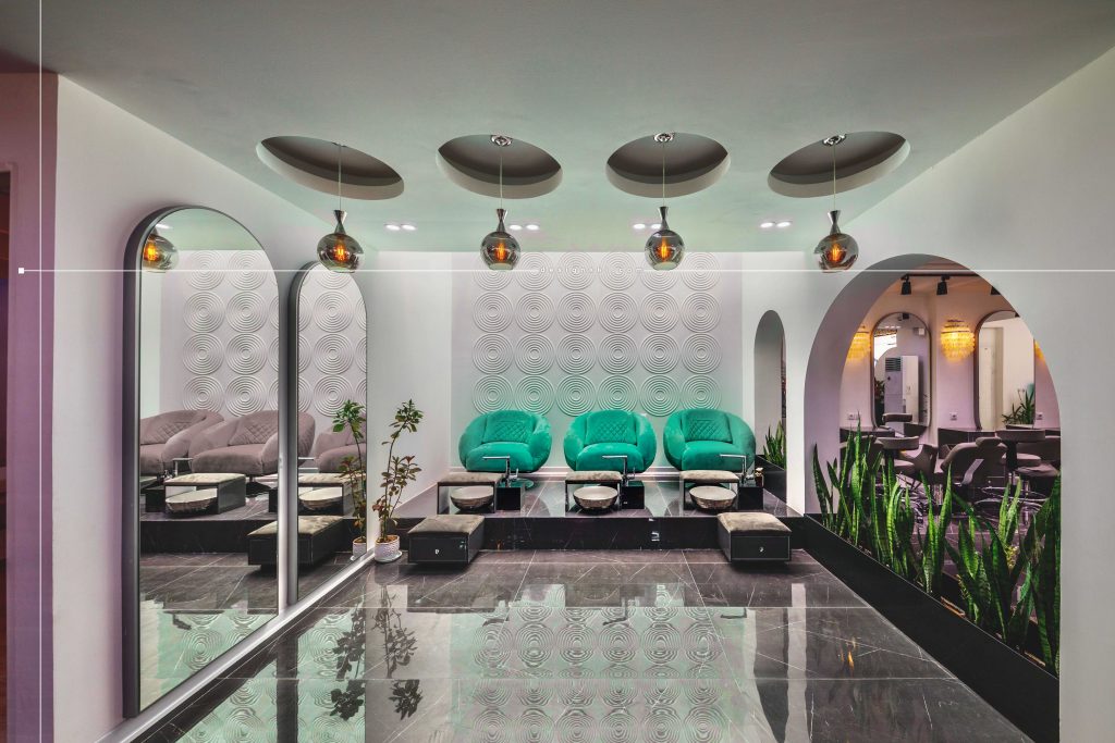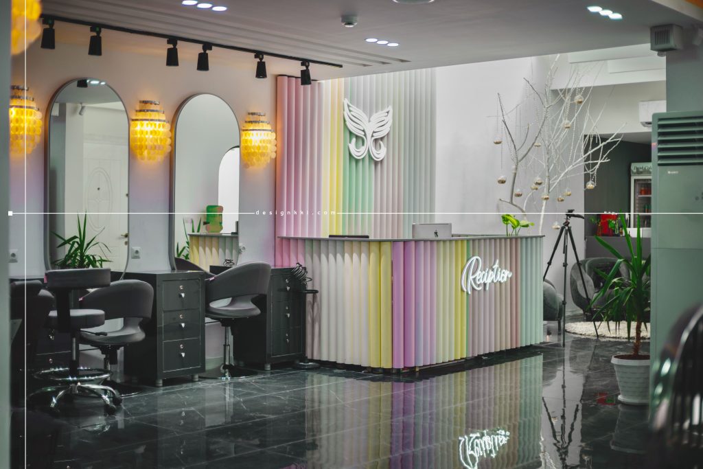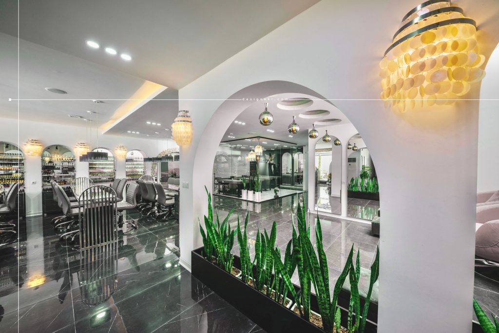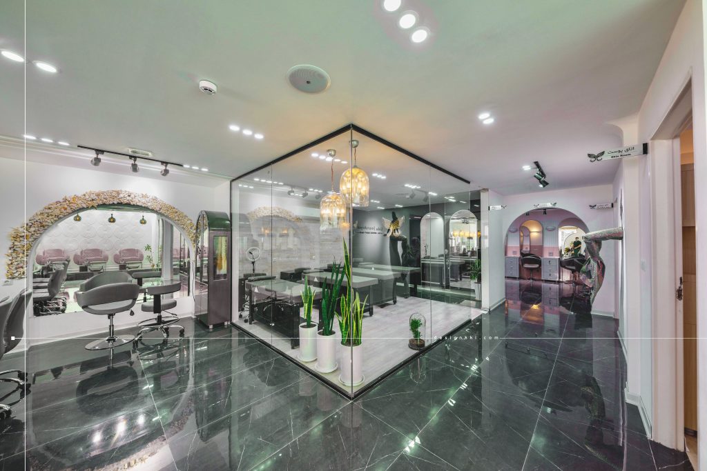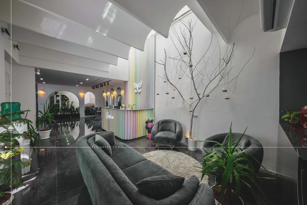 Lida jourabian Beauty Salon located in Kianpars area of Ahvaz and on a land of 220 square meters and has been renovated within 5 months. In the design of the façade using crow lines as well as vertical lines separator attempted to see the taller building and also the use of large mirrored orb on the entrance of the complex is emphasized. The repetition of crow lines in the flooring of the courtyard at the entrance is combined with the waterfront, which is well visible from inside the main hall. The use of colored pipes in the responsiveness and entrance based on the use of the complex emphasizes on the right part of which are service spaces including cloakroom, service, buffet and waiting space. In the interior design of the hall, it has been tried to use the vault shape which is the main concept of the project in different sizes and shapes in different lines. The eyelash and tattoo part is separated from the main hall by the glass curtain, which will make the visual connection suitable in the space.