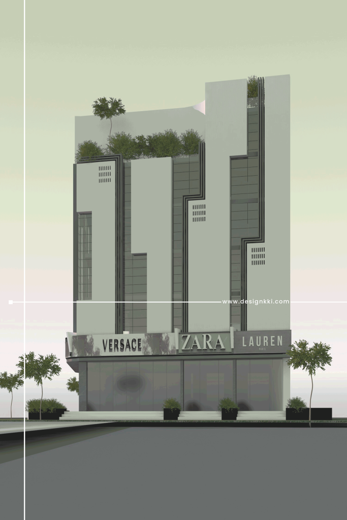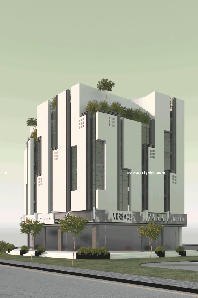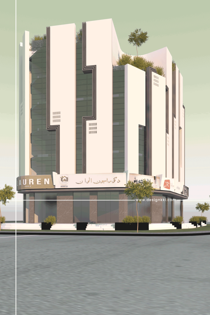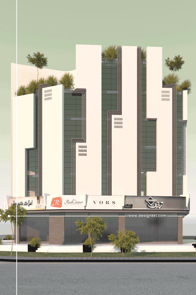 On the upper floors, where there is a good view for the viewer (user) and are considered golden points in the facade, it is considered as a living space in the roof garden, which is attractive by implementing green space in addition to helping to lower the temperature. Wet space is also addressed.