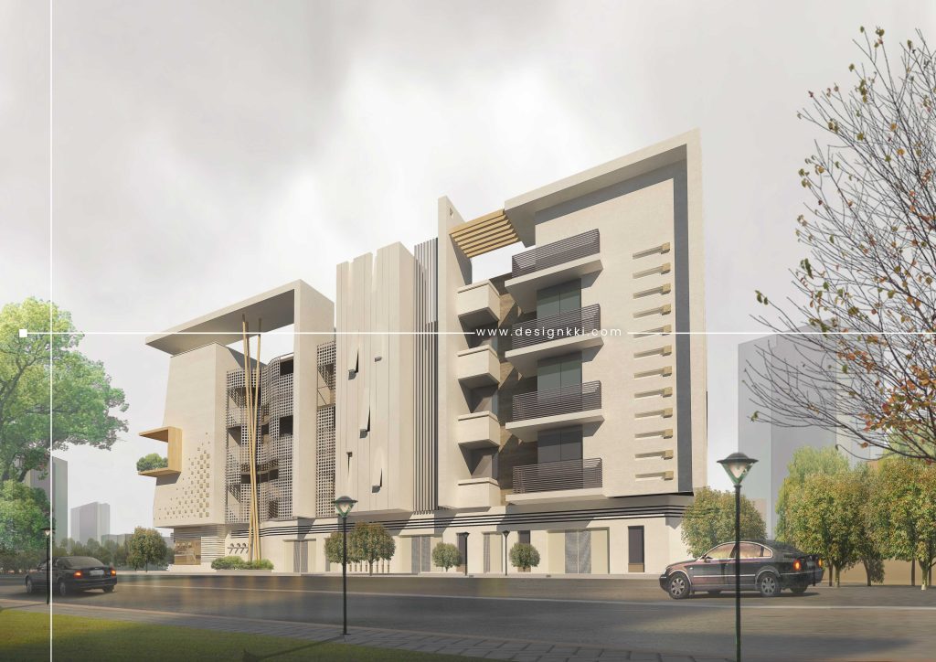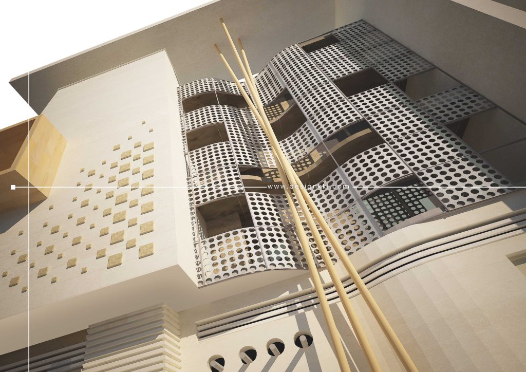 Since this building is located in one of the most crowded places of Mahshahr It has special characteristics. This complex has 22 units and is 3219 m2, and was built in 3 floors. Some areas of the ground floor including commercial units have direct access to the main street, due to the need for a separate entrance for people and cars. Units with areas between 85-200 m2 are divided into two main blocks, one of which was considered the primary one due to its access to the main street. The main block consists of a big solid volume without any windows and openings, facing the main street. Thermo wood is used in balconies in this block, having shades designed to prevent direct sunlight from entering interior spaces. Materials of the facade are used in a way to cover up air condition condensing units. Architectural design of the units focuses on minimizing useless spaces. A rock-garden has been designed on the roof as a private courtyard.