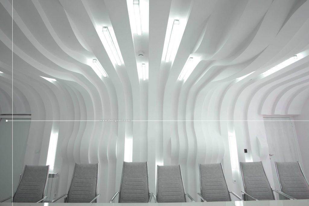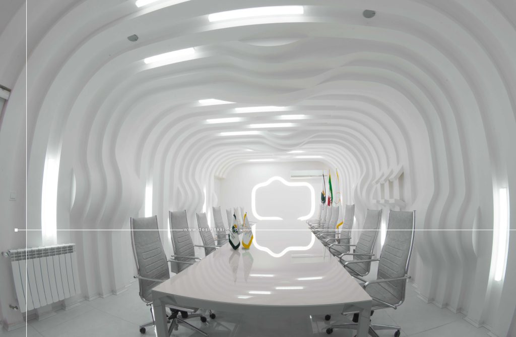 It has been tried to make a difference space in conference room by using a uniform plaster layers on walls and ceilings. Gypsum materials on has used in this room.