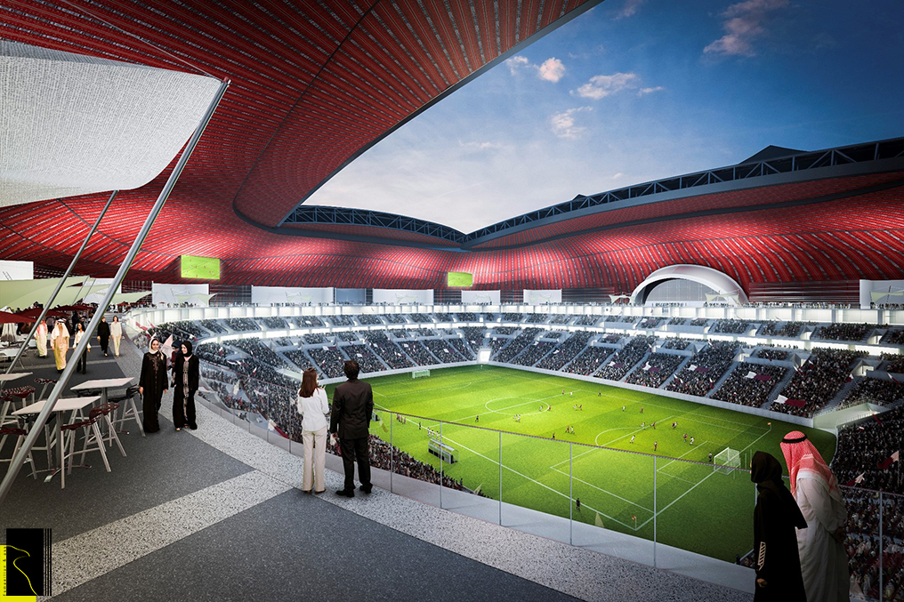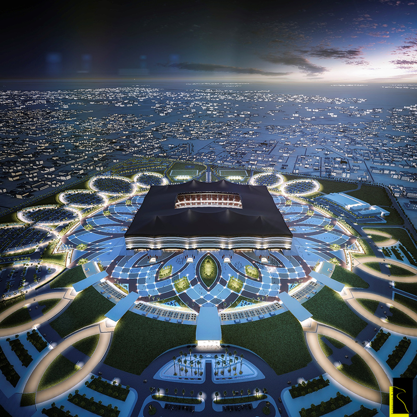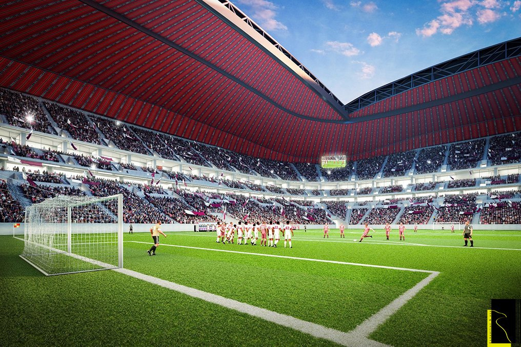 The stadium was designed by an unnamed group of Qatari architects, although Dar Al Handasa are credited as design consultants. As one of the World Cup’s semi-final venues, the stadium will hold 60,000 seats, but after the tournament the design allows the upper tier of seating to be removed, reducing the stadium to 32,000 seats. The removed seats are planned to be donated to other countries “to leave a legacy for international football development.”